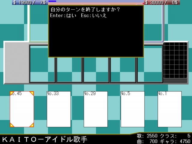 相手プロデューサは同様にターンを遂行し,終了を宣言する.ゲームの終了条件